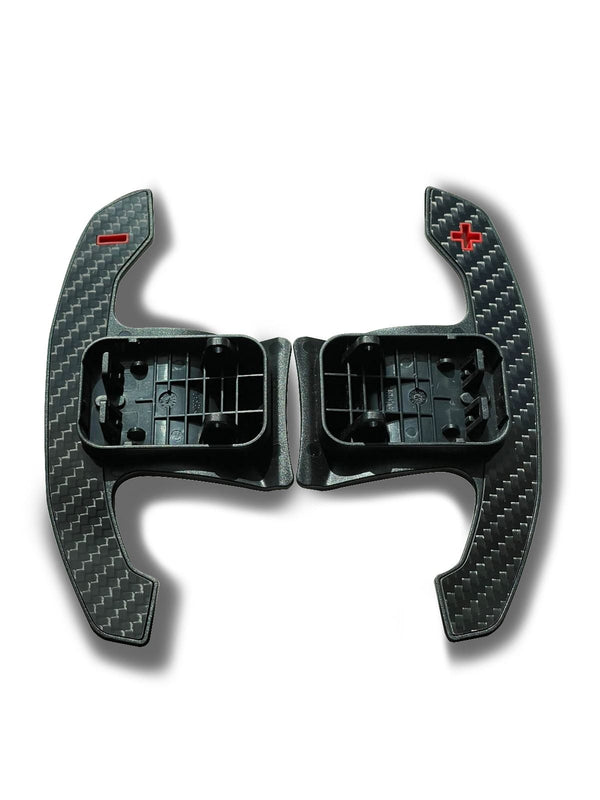 Description: Are you frustrated with reaching for the next gear during a sweeping turn when you can't find your paddle shifter? Our new MP Style carbon fiber shift paddle set for your BMW is the perfect solution! Designed for enhanced feedback and usability, these paddles are lighter than the original equipment manufacturer (OEM) paddles and are contoured to match your steering wheel. This design allows you to maintain your hand position while shifting gears, making your driving experience smoother.